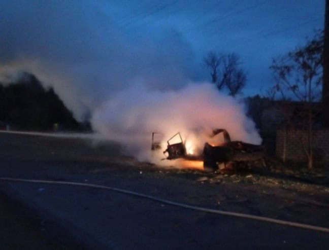 Внаслідок обстрілу вогнем охопило автомобіль.