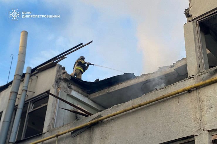 В Петропавловской громаде в результате атаки беспилотников загорелась крыша финансового учреждения.